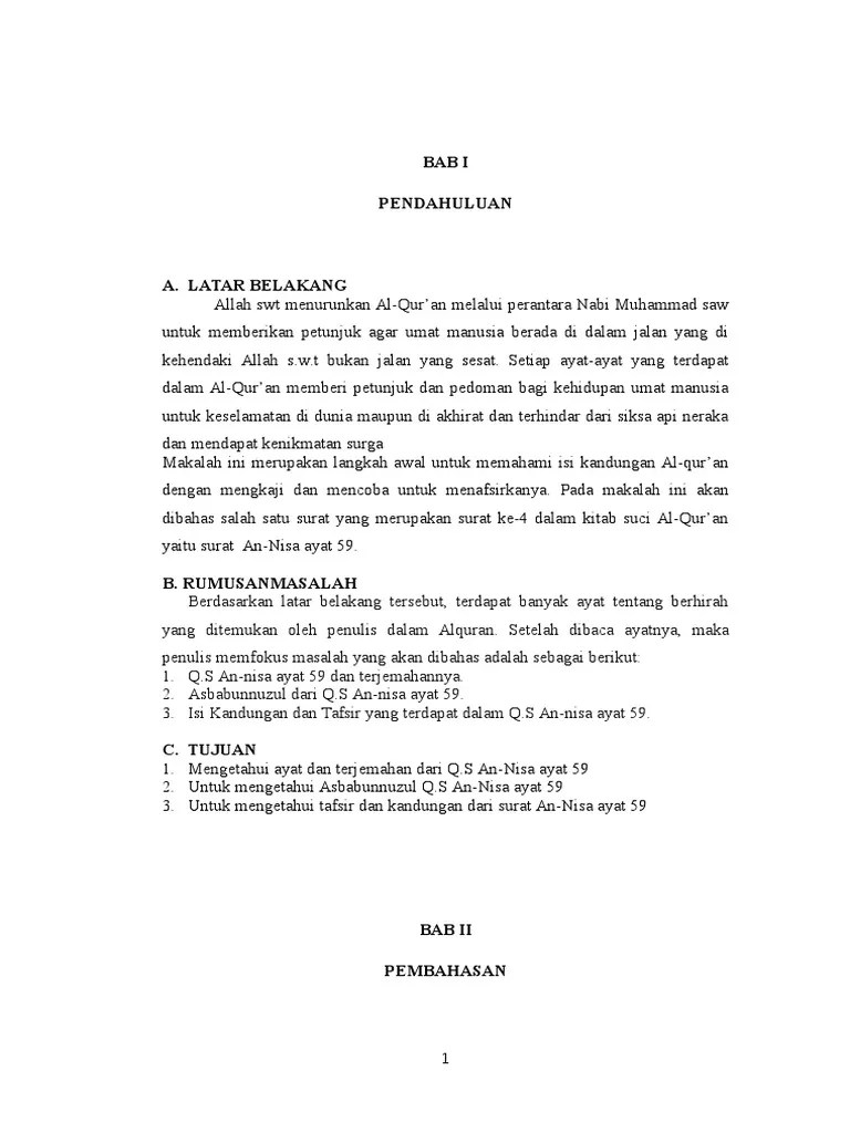 Tulisan ini akan memuat mengenai bacaan teks ayat tersebut dengan terjemahannya dalam bahasa ayat ini biasanya dipakai sebagai dalil atau sumber hukum dalam ilmu jinayah siyasah ilmu hukum demikian tulisn mengenai surat an nisa ayat 59 dalam bahsa arab dan latin serta terjemahannya. An nisa ini terdiri dari 176 ayat panjangnya dan merupakan surat madaniyyah karena turun di kota madinah. Berikut bacaan surat yasin 83 ayat, beserta tulisan latin dan tulisan arab: Hukum tajwid surat an nisa ayat 59 beserta penjelasannya lengkap from kajianmuslim.net. surat al ahzab ayat 59 adalah ayat tentang kewajiban menutup aurat (berjilbab).